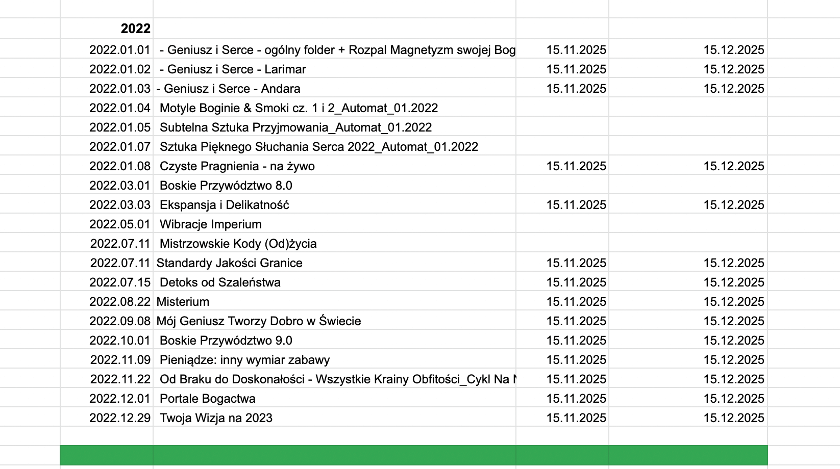*Katarzyna zastrzega sobie prawo do udostępnienia tylko wybranych warsztatów.